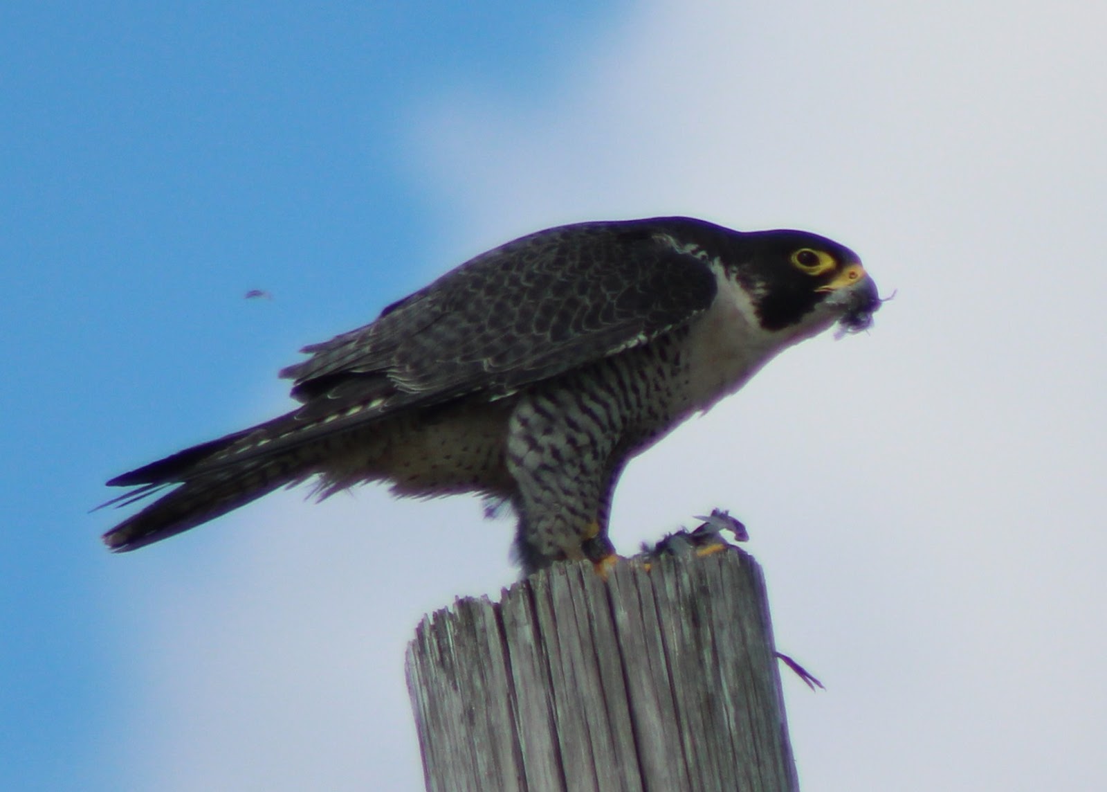 bulleting in and steals the Dunlin from the Merlin. The Peregrine Falcon goes